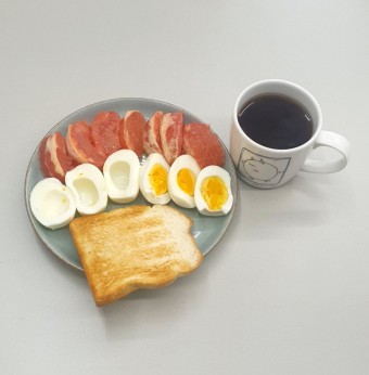 삶은 계란 2개 자몽 1개 토스트 1장 블랙커피 |