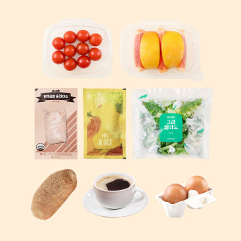 과일 샐러드 | 닭가슴살 1조각 토마토 1개 오이 1개 블랙커피 |