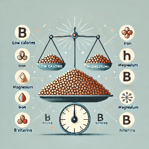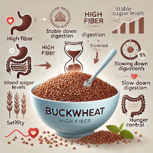 높은 섬유질 함량: 메밀의 섬유질은 소화 속도를 늦추고, 포만감을 증가시키며, 혈당 수치가 급격하게 상승하는 것을 방지합니다. 이렇게 하면 배고픔을 조절하고 갈망을 피하기가 더 쉬워집니다.