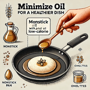 기름 사용량 최소화: 팬케이크나 오믈렛과 같은 요리를 만들 때는 들러붙지 않는 팬을 사용하고 기름을 최소화하여 칼로리를 낮게 유지하세요.