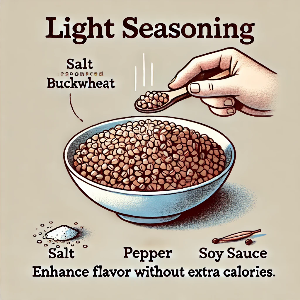 가벼운 양념: 무거운 양념을 피하여 메밀 본연의 맛을 살립니다. 약간의 소금, 후추 또는 간장을 사용하면 칼로리를 추가하지 않고도 맛을 향상시킬 수 있습니다.