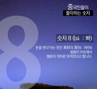 숫자 8은 다양한 문화와 종교에서 특별한 의미를 지닙니다. 중국 문화에서는 숫자 8이 행운과 부유함을 상징합니다. 8은 발음이 '발'과 비슷해 중국어에서는 행운을 가져다주는 숫자로 여겨집니다. 또한, 8의 무한성과 균형을 상징하는 모습은 많은 사람들에게 긍정적인 상징으로 여깁니다. 중국뿐만 아니라, 많은 문화에서 숫자 8은 중요한 의미를 갖습니다. 예를 들어, 기독교에서는 8일째가 새로운 시작을 상징하는 것으로 여겨집니다. 또한, 일부 동양 문화에서는 8의 숫자가 우주의 균형과 조화를 나타낸다고 믿습니다. 이러한 이유로, 많은 사람들은 특별한 날짜나 순간을 선택할 때 숫자 8을 고려하기도 합니다. 숫자 8은 안과 밖에서 강한 성격을 가지며, 강한 의지로 꾸준히 노력하는 행운의 숫자입니다. 어떠한 어려움과 역경이 닥쳐도 강인한 정신력으로 극복하며 위대한 업적을 이루어냅니다. 한편으로 예민한 신경을 가지고 있어 고집스러운 면도 있으며, 이로 인해 주변 사람들과의 갈등 요소도 있을 수 있습니다. 독립적으로 수행하기 위한 강한 의지와 확고한 신념을 가지고 있어, 부와 명예를 모두 달성할 수 있는 길운 한 숫자입니다.
