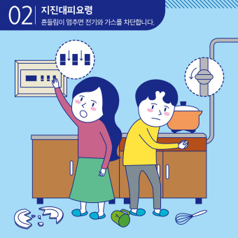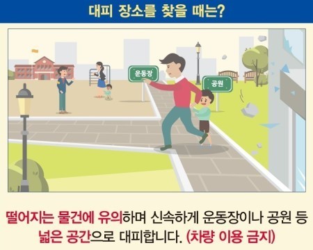 지진이 발생하면 즉시 튼튼한 가구나 테이블 밑으로 피하는 것이 중요합니다. 지진의 충격으로 인해 천장이나 벽, 가구 등에서 물건이 떨어질 수 있기 때문입니다. 이때, 머리와 목을 보호하는 것이 가장 중요하므로 양팔로 머리를 감싸고 몸을 최대한 낮추어 안정적인 자세를 유지합니다. 책상이나 테이블이 없다면, 침대나 소파 옆으로 이동해 몸을 웅크리고 보호할 수 있는 구조물을 최대한 활용하세요.