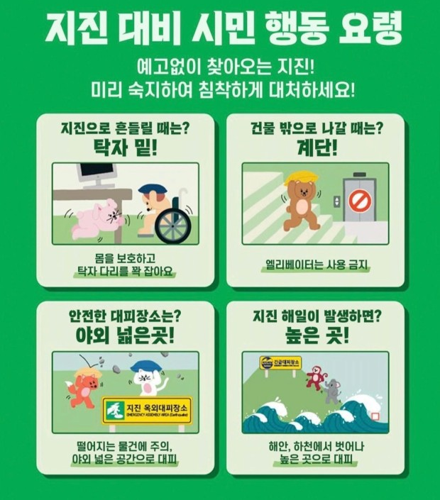 지진은 예고 없이 찾아오는 자연재해로, 그 피해는 가늠할 수 없을 만큼 크고 치명적입니다. 그러나 우리가 미리 준비하고 안전 수칙을 준수한다면 피해를 최소화할 수 있습니다. 이번 글에서는 지진 발생 시 생명을 보호하고 안전을 지키기 위한 필수 안전수칙을 알아보겠습니다.