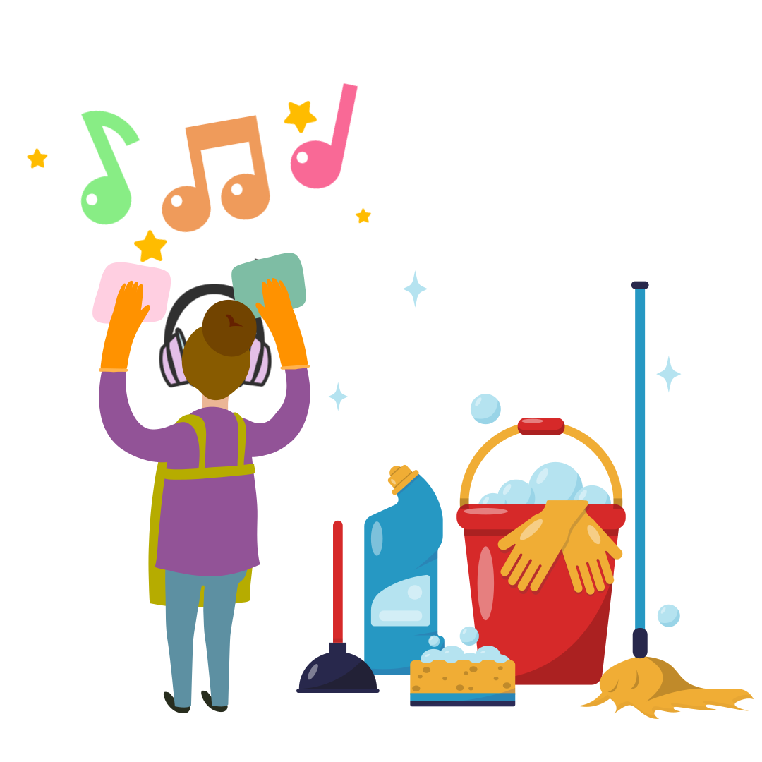 음악은 우리의 기분을 변화시키고 에너지를 주는데 도움을 줄 수 있습니다. 청소하면서 내가 좋아하는 음악을 틀어놓고 리듬에 맞춰 청소를 진행해 보세요. 좋아하는 노래를 들으며 청소하면 더욱 즐거워질 것입니다.