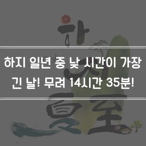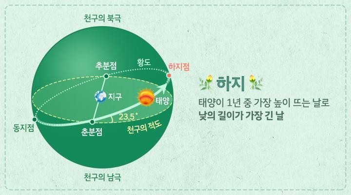 하지(夏至)는 24 절기의 하나로, 양력으로는 보통 6월 21일입니다. 과거 2019년까지는 윤년 전해마다 하지가 6월 22일이었으며, 2056년부터는 윤년마다 하지가 6월 20일입니다. 북반구에서 일 년 중 낮의 길이가 가장 긴 절기이며. 밤의 길이는 가장 짧습니다. 서울 근교의 북위 37~38도선에선 평균적으로 낮의 길이가 14시간 50분을 전후합니다. 1년 중 가장 더운 날은 아니지만 이 시기 서울에서는 4시 40분쯤부터 밝아져 5시 11분쯤에 해가 뜹니다. 그리고 19시 57분쯤에 지고, 날이 맑을 경우 20시 20분쯤까지 밝습니다.