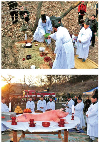 민간에서는 산이나 냇가에 제단을 만들고, 마을 전체의 공동행사로 제사를 지냈다. 제주(祭主)는 마을의 장이나 지방관청의 장이 맡고 돼지, 닭, 술, 과실, 떡, 밥, 포 등을 제물로 올립니다. 경우에 따라서는 무당이 제를 관장하기도 합니다. 또 민간에서는 신성한 지역에 제물로 바친 동물의 피를 뿌려 더럽혀 놓으면 그것을 씻기 위해 비를 내린다는 생각으로, 개나 소 등을 잡아 그 피를 바위나 산봉우리 등에 뿌려 놓는 풍습이 있었습니다.