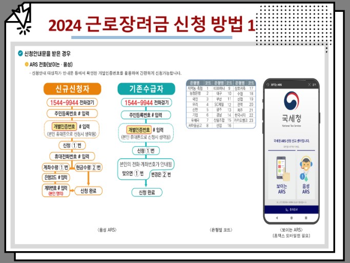 - 근로장려금을 반기신청한 거주자에 대하여, 이미 환급받은 반기별 근로장려금과 정기신청하여 환급하여야 할 해당 과세연도 근로장려금을 비교하여 그 차액을 2024년 6월 30일까지 정산(추가지급하거나 과다지급된 경우 향후 지급할 장려금에서 차감)합니다.